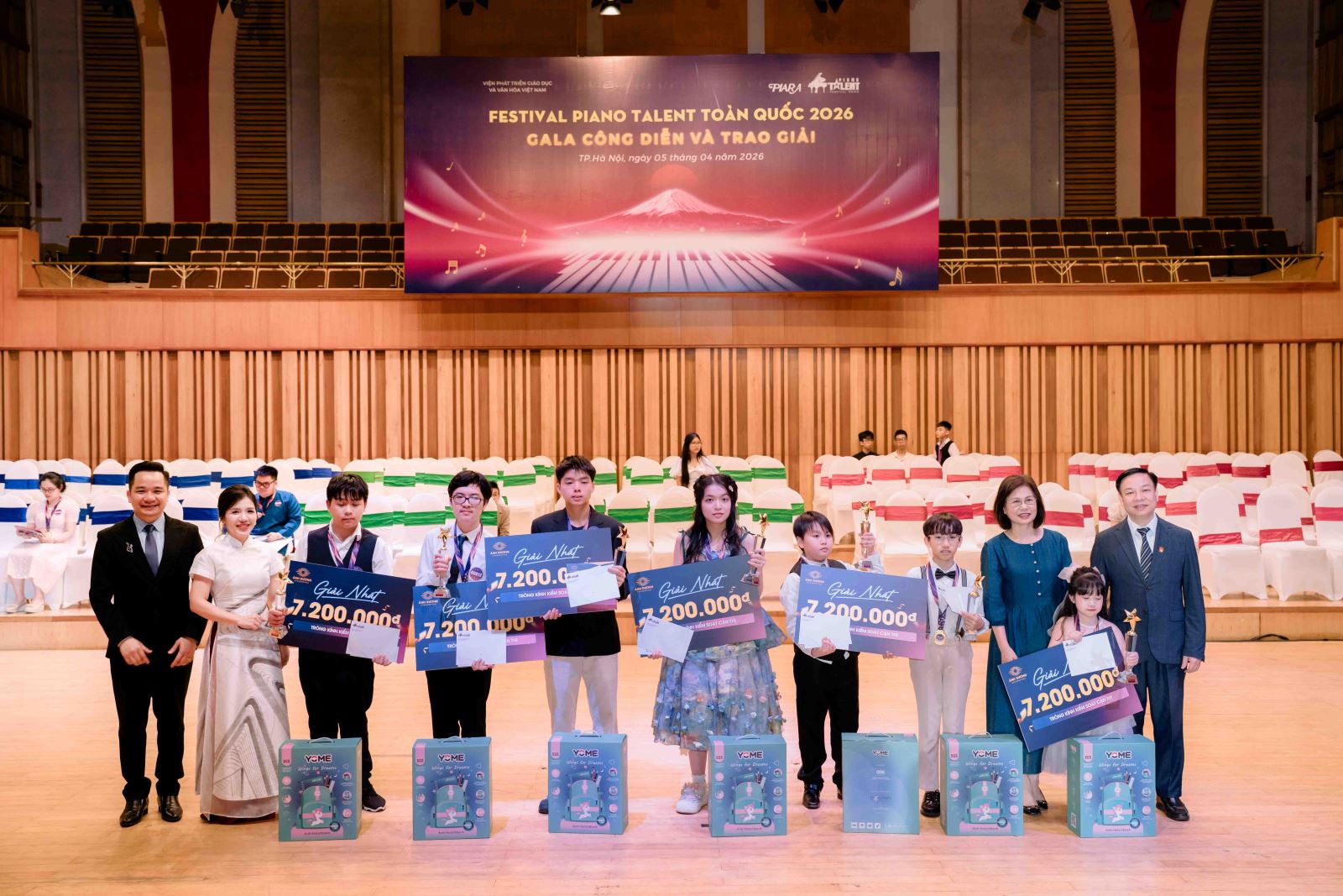 Tối 5-4, đêm chung kết Festival Piano Talent toàn quốc 2026 diễn ra tại Học viện Âm nhạc quốc gia Việt Nam (Hà Nội). Ban Tổ chức đã vinh danh những thí sinh xuất sắc nhất ở từng bảng thi và hạng mục. Có 13 cúp được trao, ghi nhận thành tích nổi bật của các tài năng trẻ.